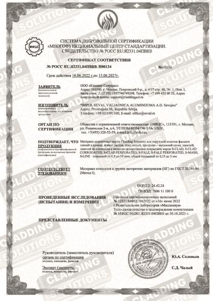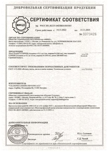 Сертификат соответствия: лента и листы латунные S-BRASS